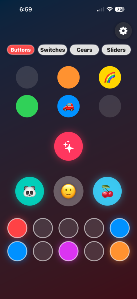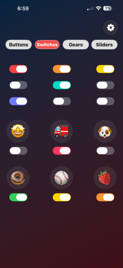 Busy board is a great app for kids who need to play with buttons, switches and gears. This app is full of bright colors, spinning gears, and fun emojis.